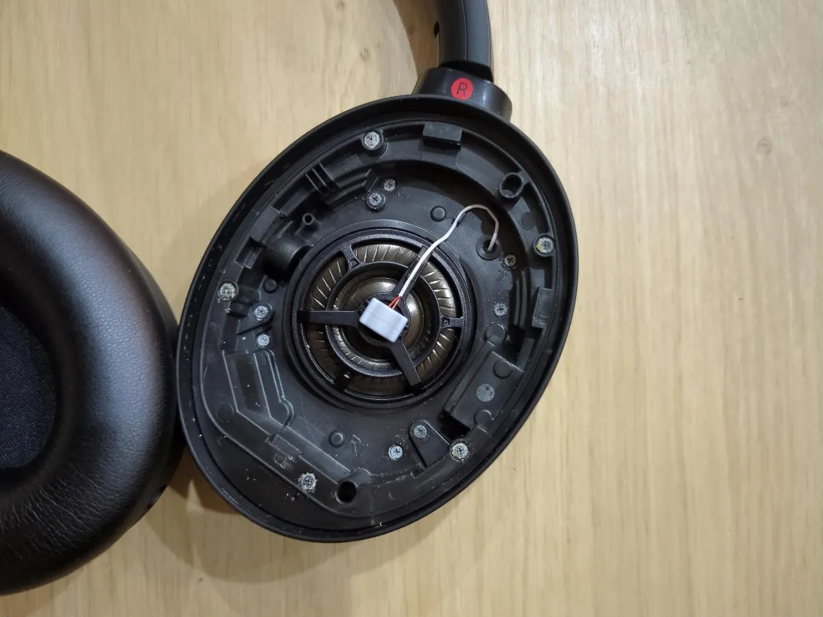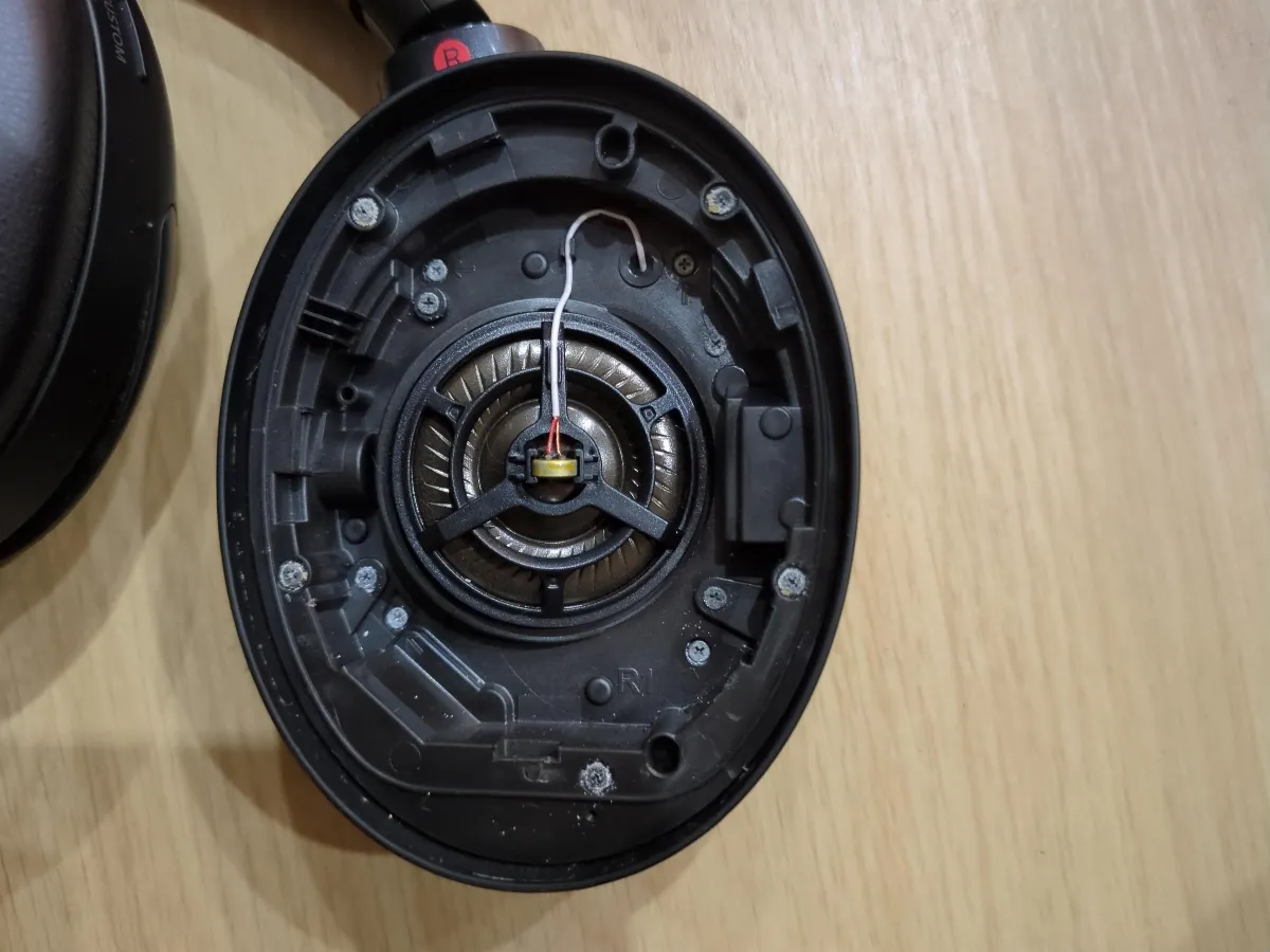 Right earcup removed - Access the driver - Remove the foam covering the driver